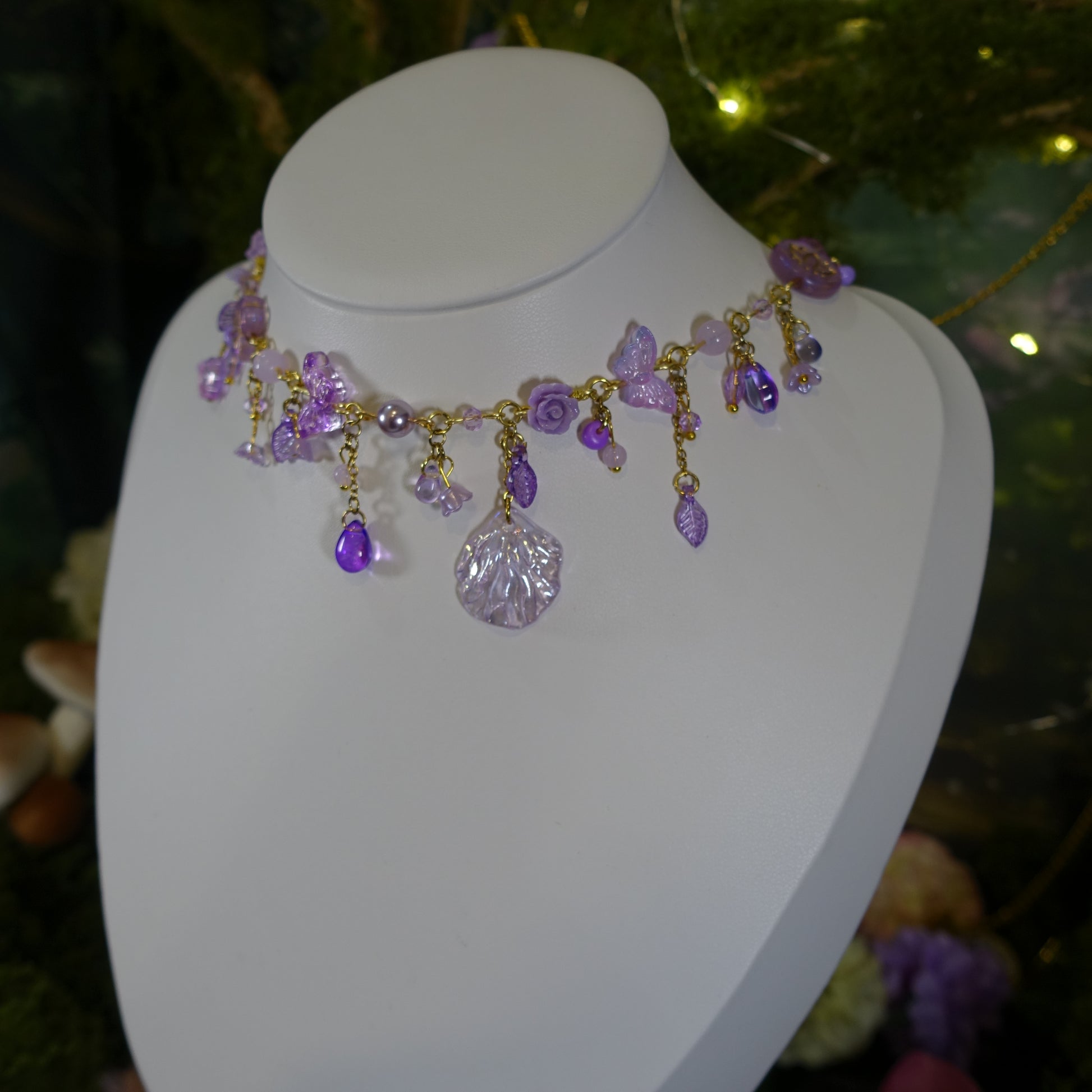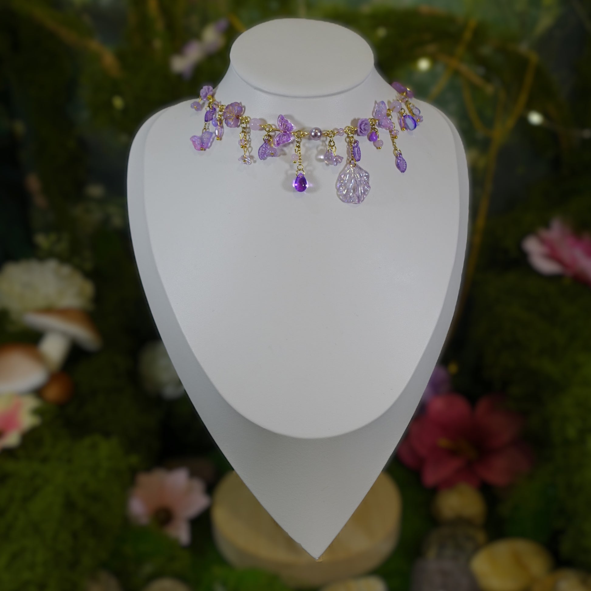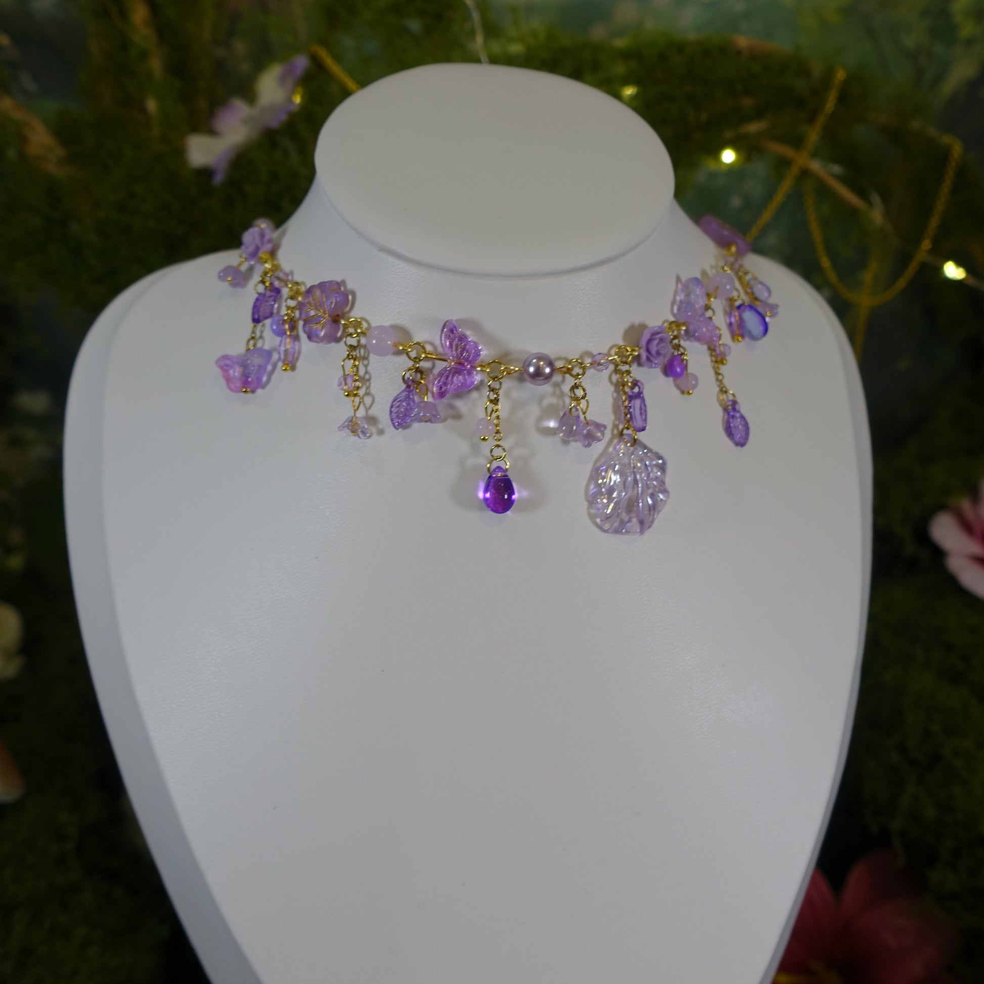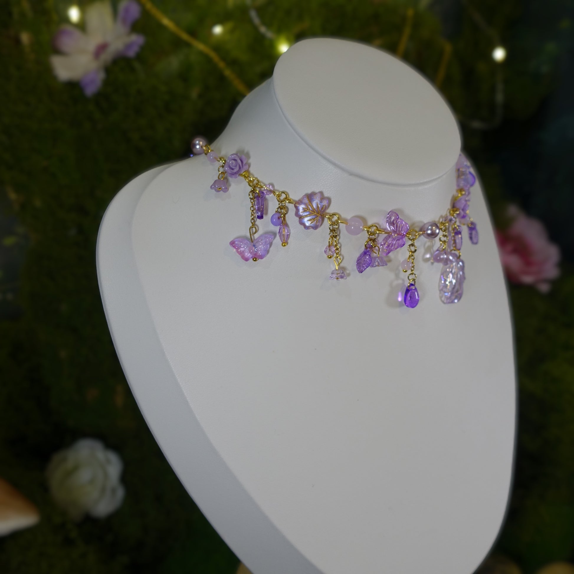 Cosmos Necklace: Inspired by midnight gardens and starlit skies, where petals float among twinkling beads, turning every glance into a little universe of purple dreams 💜✨🌸